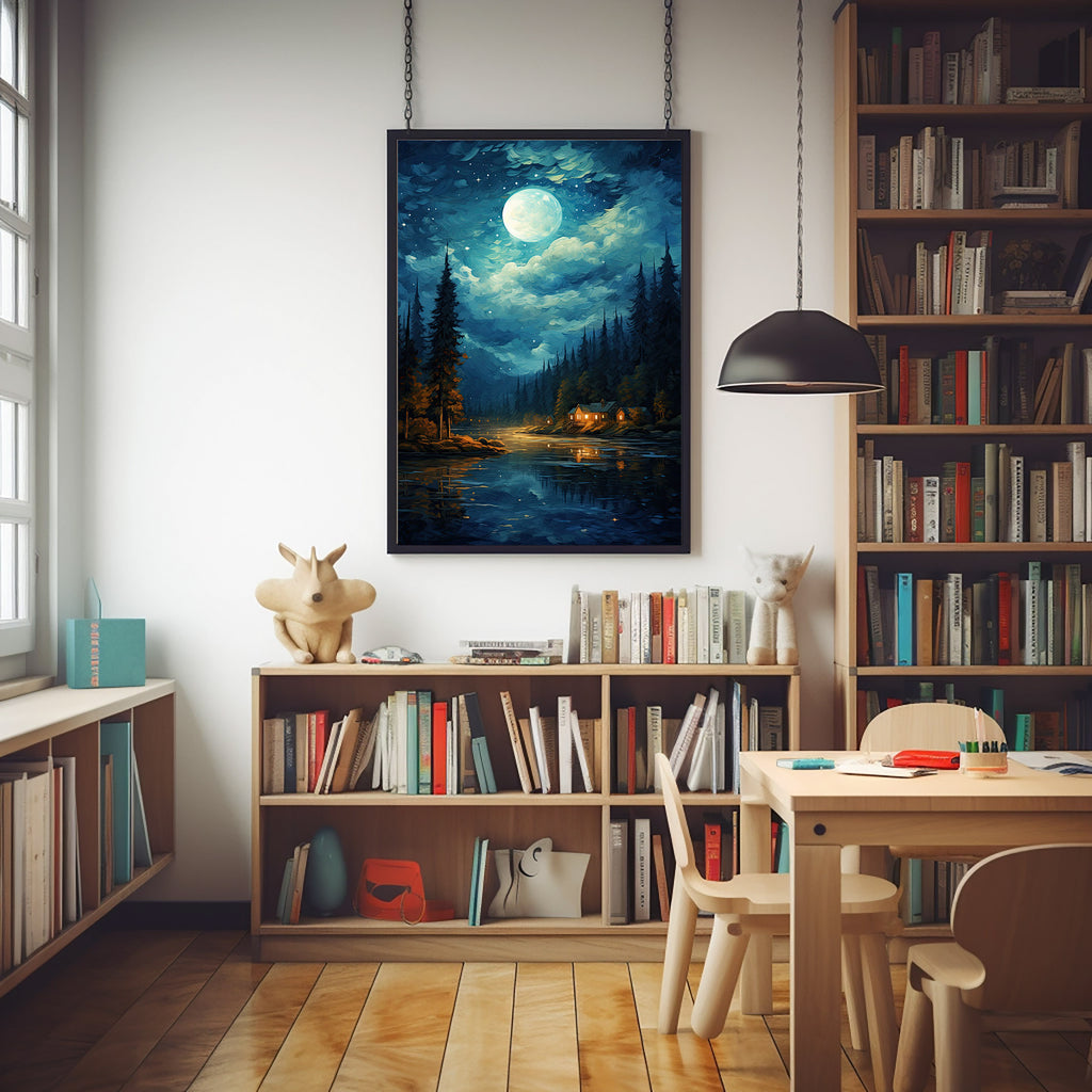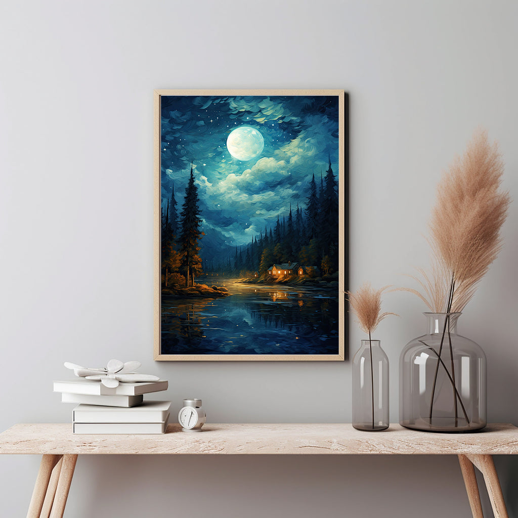 Add this enchanting and original night sky oil painting to your collection, and let it bring the serene beauty and mystical charm of a moonlit landscape into your home or office.