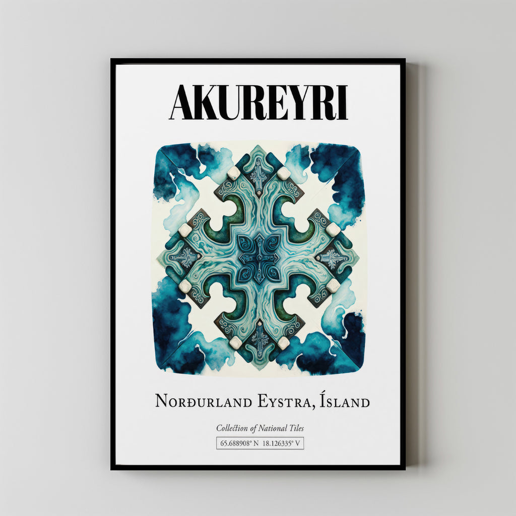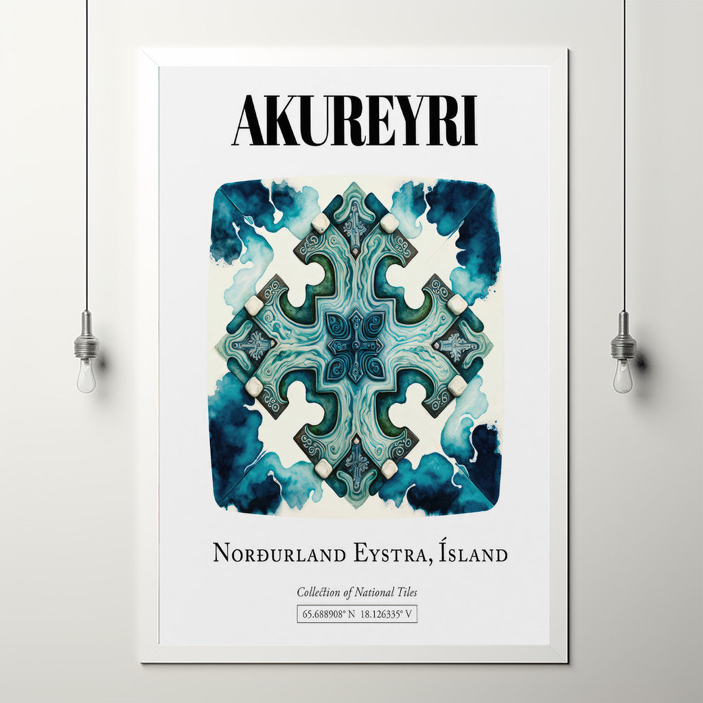 Akureyri, Norðurland Eystra, Iceland, Traditional Tile Pattern Aesthetic Wall Art Decor Print Poster