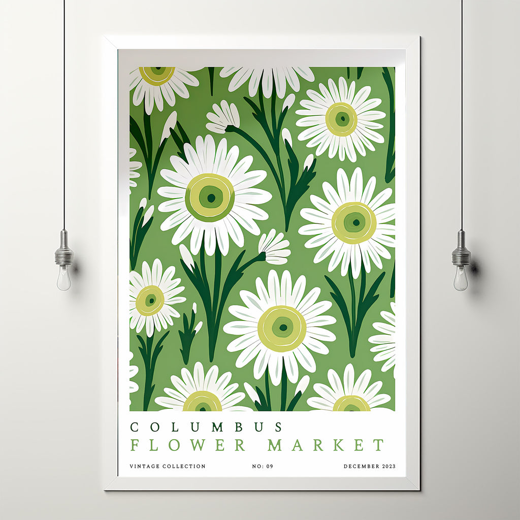 Flower Market Print Columbus Floral Illustration Travel Poster Ohio Green Marguerite Daisy Flower Art Botanical Flower Print Unique Flower