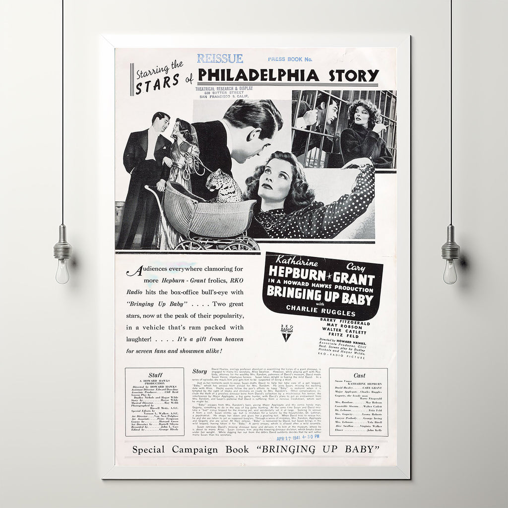 Bringing Up Baby Movie Poster Print, Canvas Wall Art, Room Decor, Movie Art