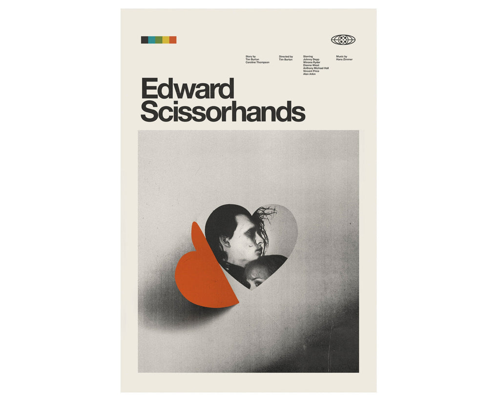 EDWARD SCISSORHANDS Inspired Poster - Minimalist, Tim Burton, Mid-Century Modern, Heart, Love, Black and White, Swiss 1029043702