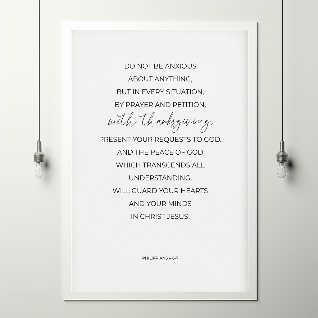 Philippians 467, Do not be anxious about anything Bible Verse Poster Wall Art, Minimalist Christian Wall Art Digital Typography Print